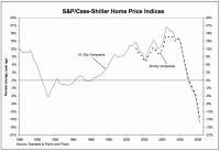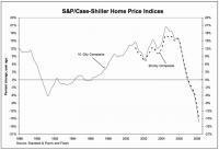 米格付け会社スタンダード・アンド・プアーズ(S&P)が24日発表した4月の全米主要十都市の一戸建て住宅価格は前年同月比で16.3%下落し、1987年の調査開始以来、最大の下げを記録した。信用力の低い個人向け住宅融資(サブプライムローン)問題を背景に、住宅ローンの焦げ付きや差し押さえが高水準で推移していることなどが影響している。