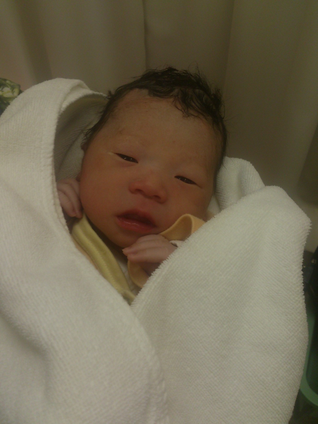 もうすでに分娩台の上にいて、しれっと立会いしちゃいました。
