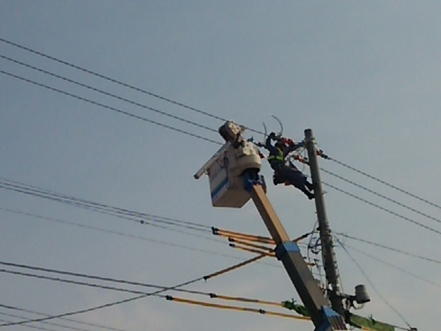 ちなみに、九州では台風対策で電信柱は無く、1本の電柱に電力線と電信線が段違いで両方架かっています。
