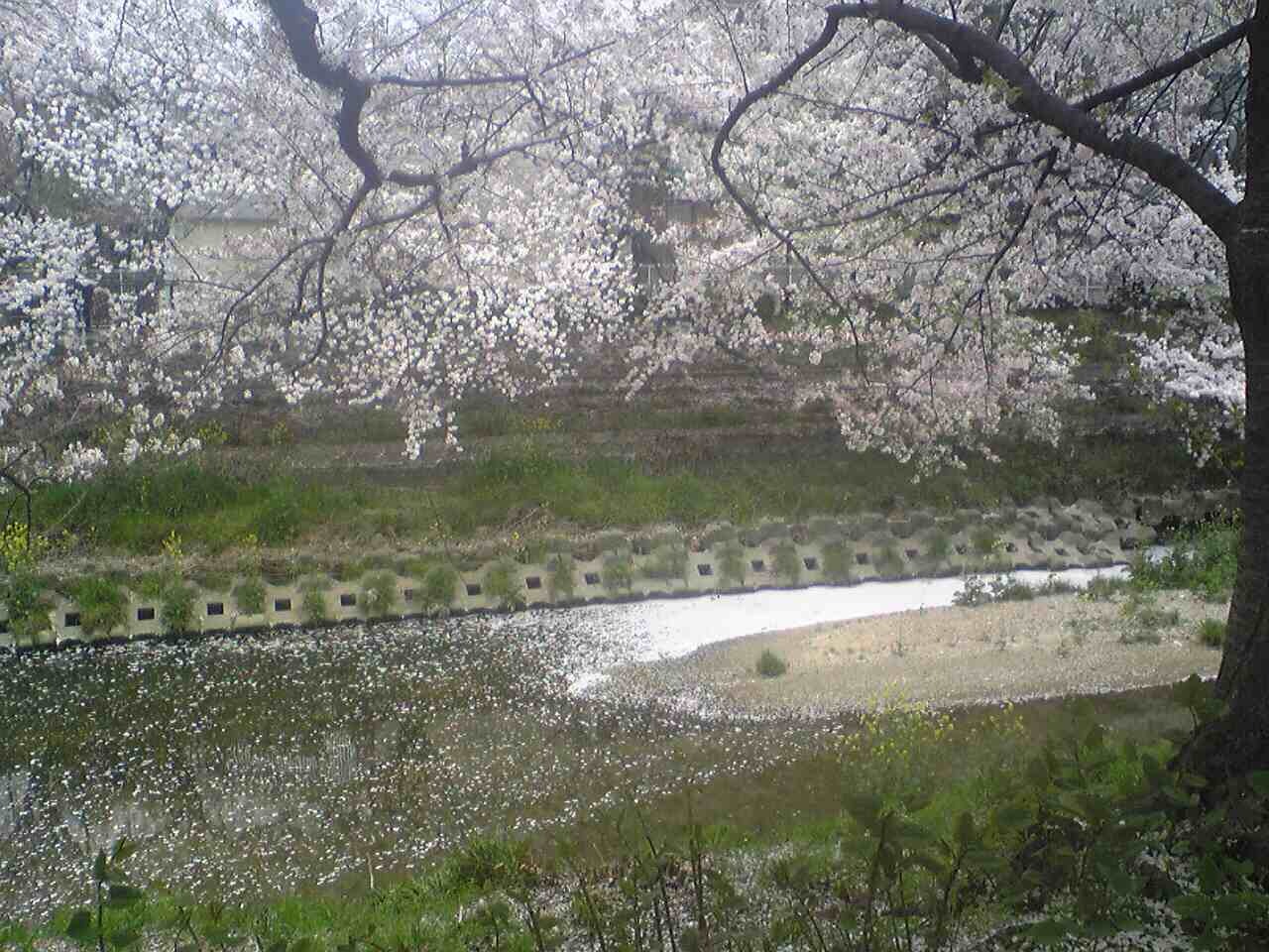 落ちた花弁が川に流れていく。