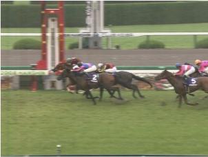 丁度ゴール地点でスッポ抜けて、佐藤哲騎手に