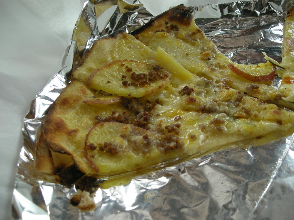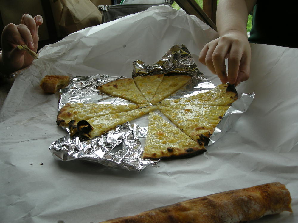 この日は夜が「吉田牧場」の「カチョカバロ」パーティーであるが昼もチーズ主体になってしまった。今月は「ジャガイモ」と「ニンニク」の2種類のピザであった。どちらもおいも系であったが、おいしく食べれた。