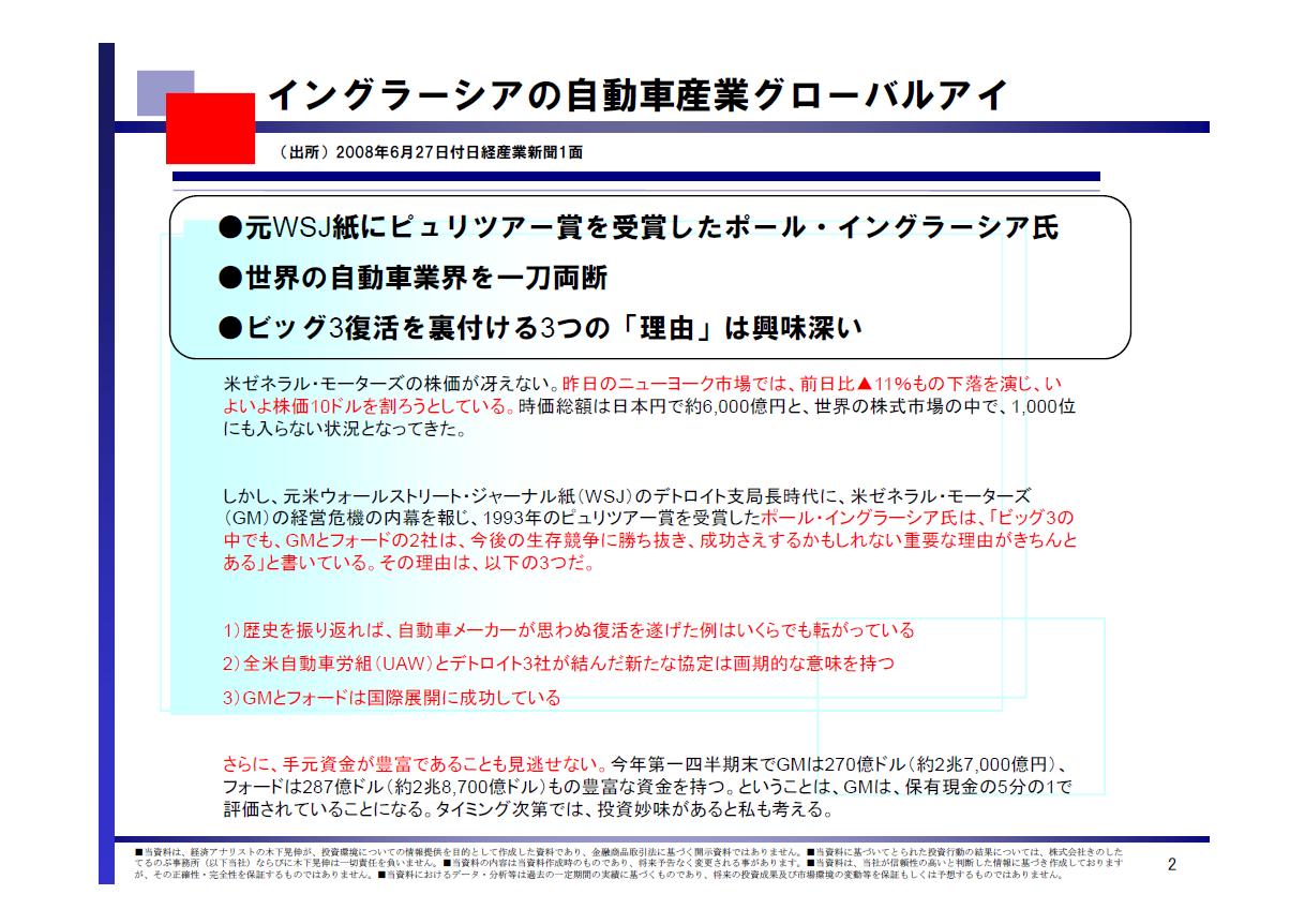 「ビッグ3の中でも、GMとフォードの2社は、今後の生存競争に勝ち抜き、