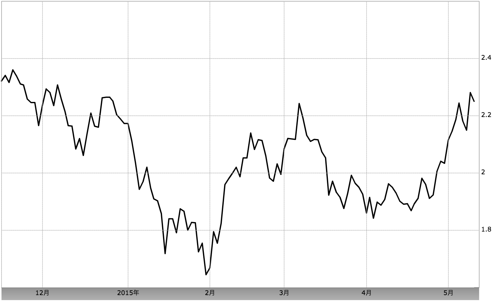 米長期金利のチャート。半年ぶりの水準まで上昇しています。