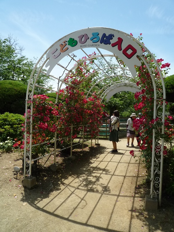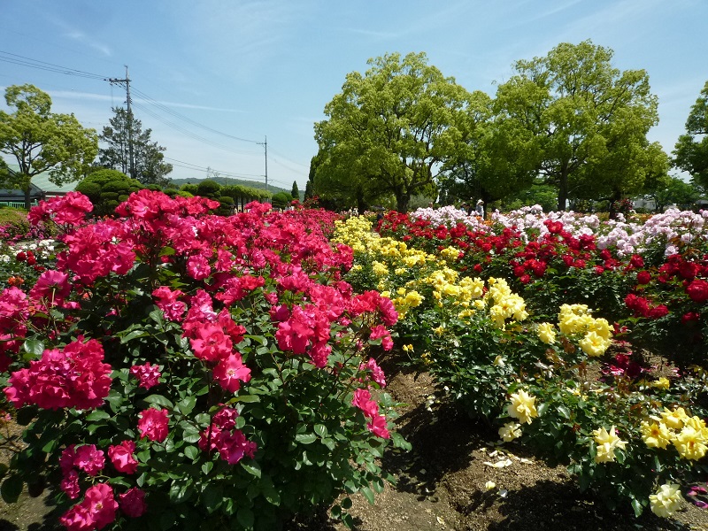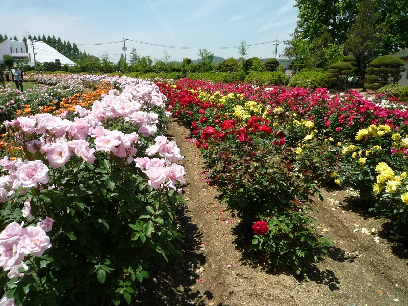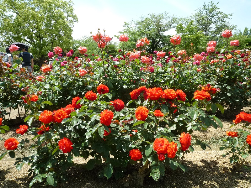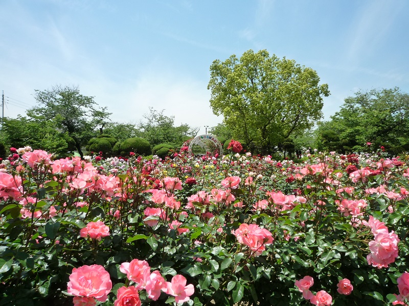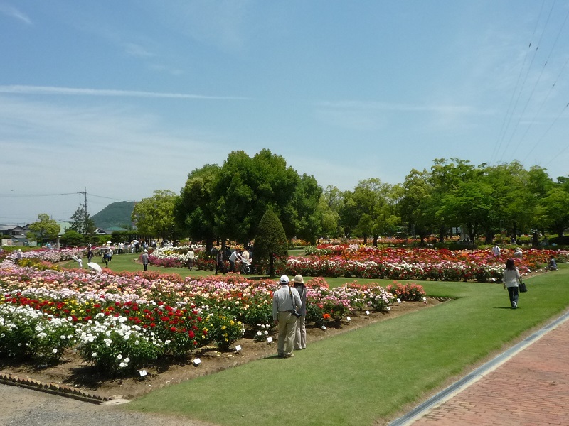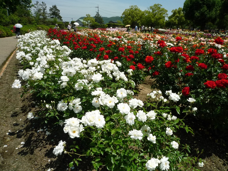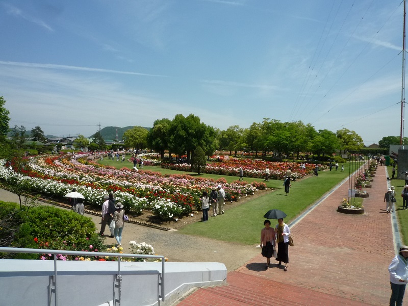 バラ園入口は小高くして展望台を兼ねてます。一面のバラ、バラ、バラ