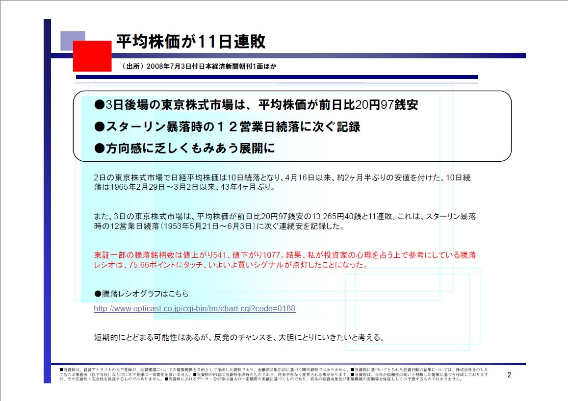 10日続落は1965年2月29日〜3月2日以来、43年4ヶ月ぶり。