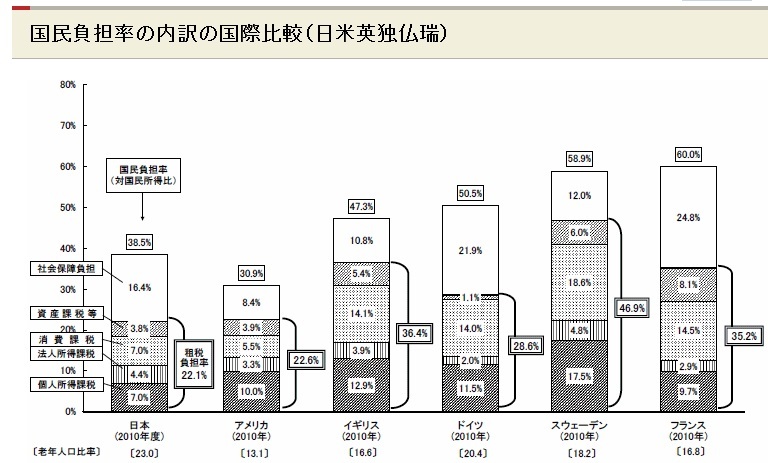 増税の根拠として、日本の国民負担率の低さを言う向きがあるが、それも以下に書くようにデタラメ。