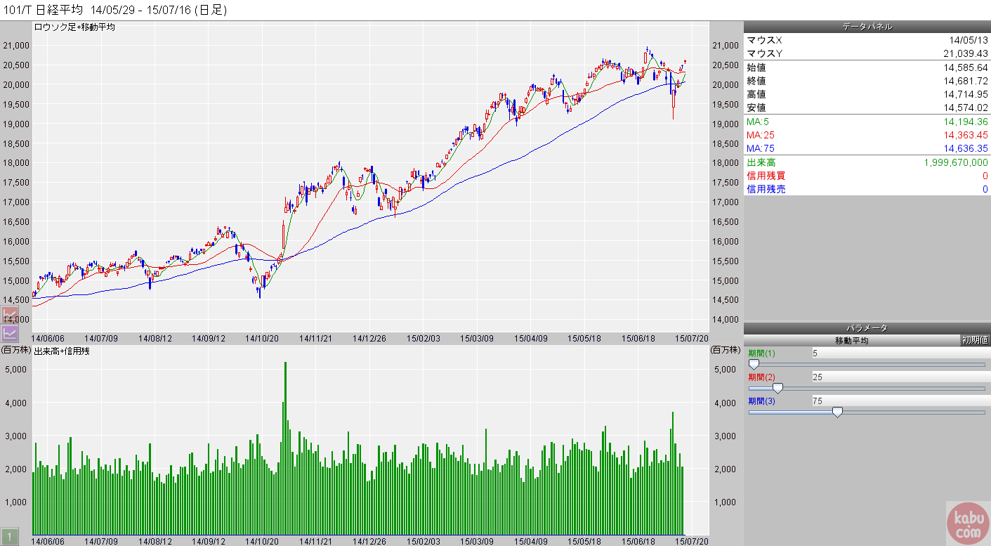 NYダウの二日間の上昇分を、NKは1日で追いかけた形です。(NK昨日不調)