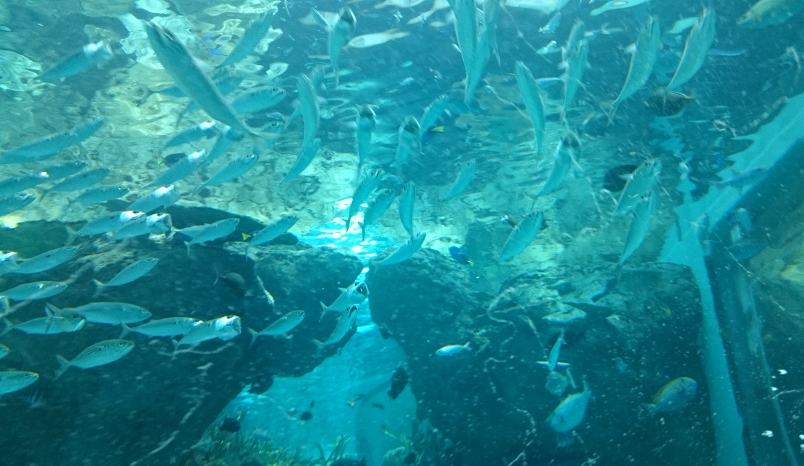 水族館も大変。アジやサバの仲間みたいなのがいっぱい寄ってきた。