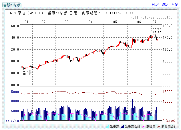 原油の行き先がいよいよ見えませんね。急落直後に「今月中に150ドルに達する」なんて、魂胆見え見えのレポートを出すところもありました。個人的には、はやいところ100ドル切るくらいまで落ちてほしいですが、無理ですね。