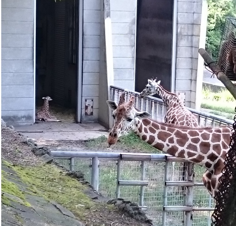 奥が親子。CBCのカメラもいました。東山動物園。キリン