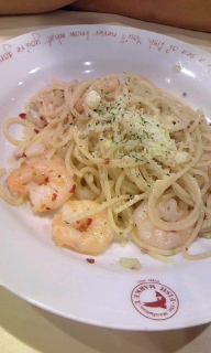 友人はエビパスタを食べて私はベビーホタテパスタを食べました。