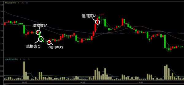始め、下がるかなーと思って、信用売りで入ったけど、こりゃダメだと思って手放すw