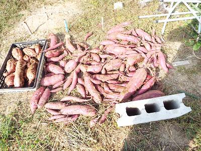 タンパク質が糖分に変わる為今から1か月間寝かせて置きます凄く大きなサツマイモが収穫できました