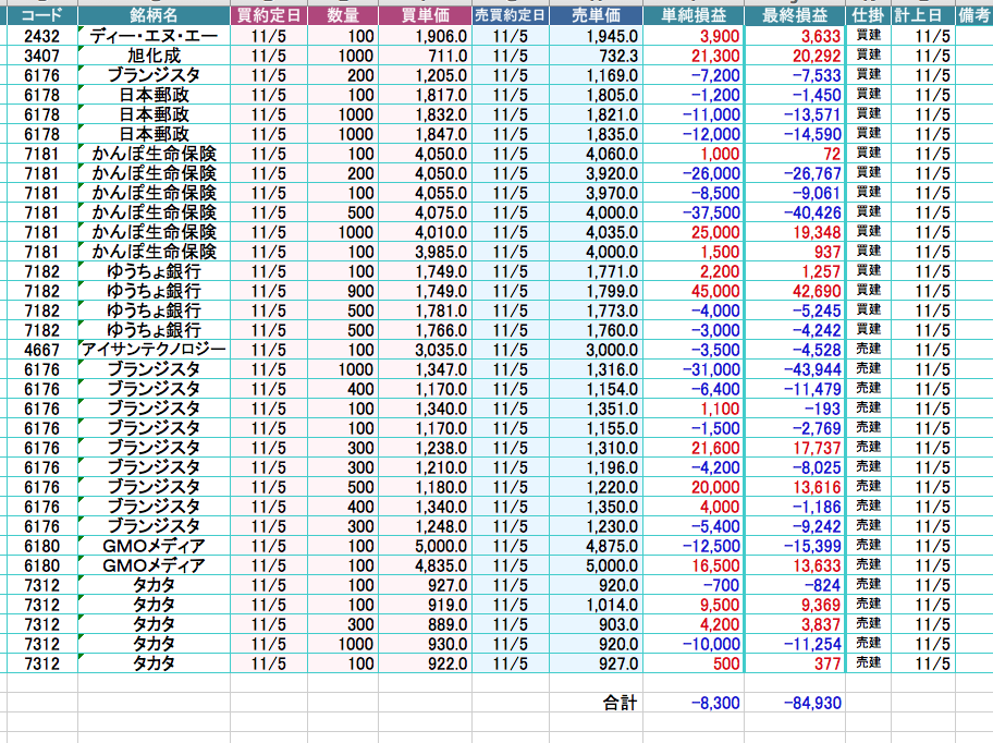 1日の損益を可視化し、そこからとりあえず学ぶつもりで記録してます。
