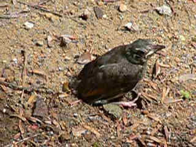 巣から降りた小鳥、地面にいたり、小枝に止まったり、元気なのは飛んでいったのもいます。