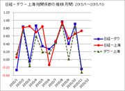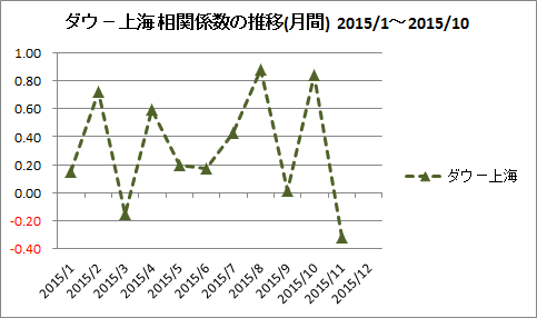 ついでに、ダウー上海の月別の相関