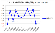 とりあえず、月別に見た相関。Excelで相関係数を計算していますが、1だとピッタンコ同じ動き、0だと無関係、-1だとまったく逆の動きを示していることになります。