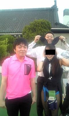 んはは、バニーさん、社長、中川さんの3ショットの写真、