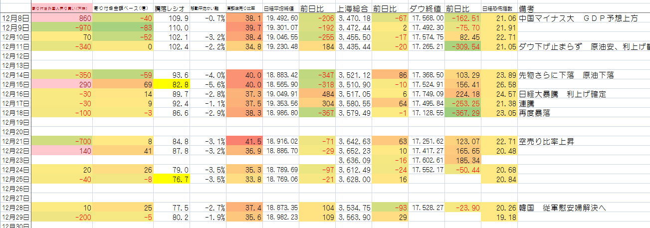 まあ構えすぎず、肩の力を常に抜き柔軟な発想に任せて情報と銘柄を連動させる。しかしながら間違えることもあるし、タイミングを誤ることもある。まあ あまり考えすぎても 未来のことなんてわからないしこれまでの経験と 世の中の流れ、情報を総合的に適当に解釈していますwwまあこう適当な感じでフィーリングを大切にするタイプなのでこのデータを蓄積するという行為は非常に役立っています。こんな単純データですが暴落前は特徴的な数値を出したりしますし。www