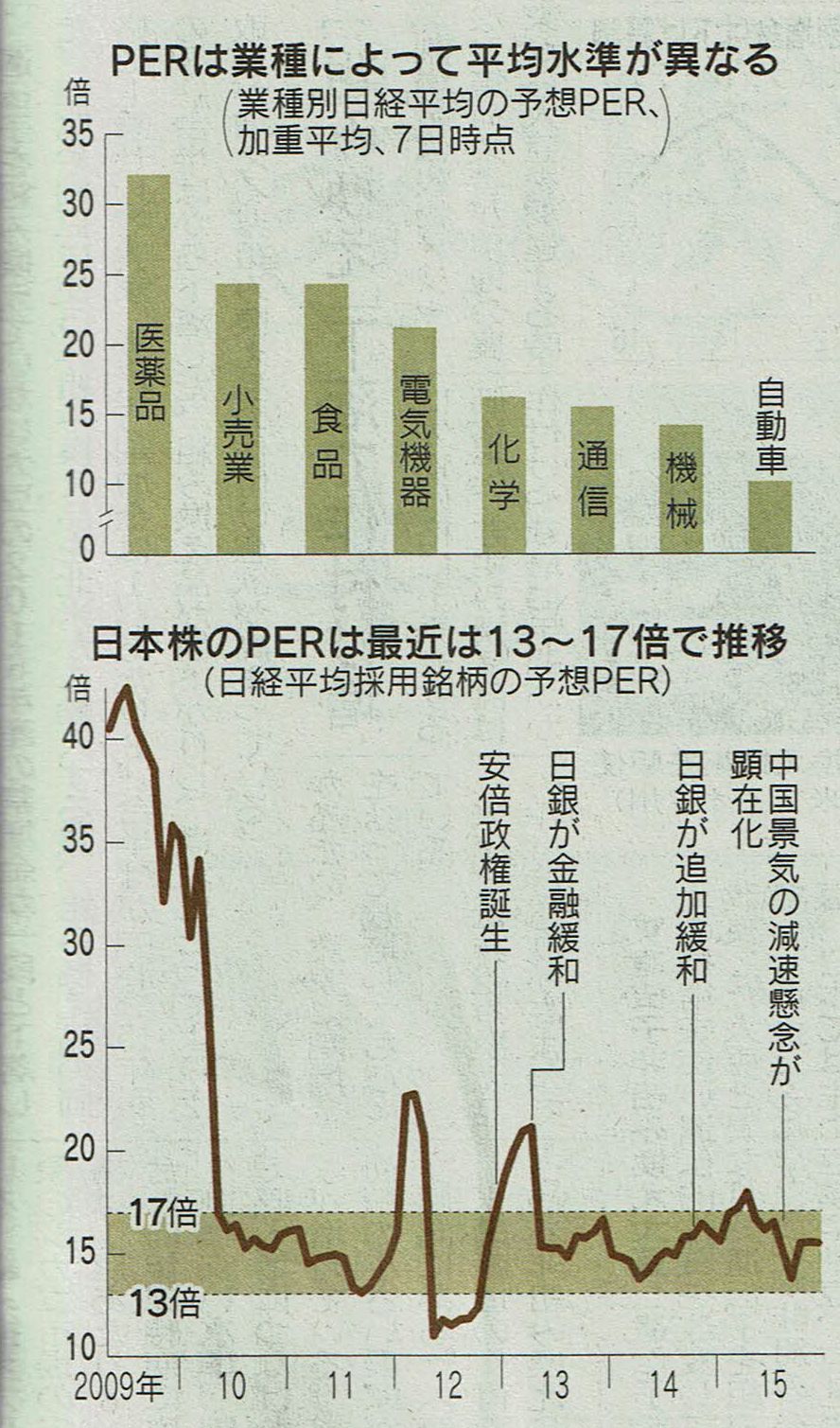 投資の入門書に、PER=15倍が目安という記載があったのを覚えていますが、