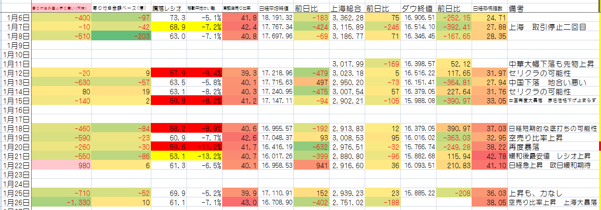 ただ日経が下がった、と見れば簡単にひどい下落だで済むけどこの数値を見ていると吐き気が