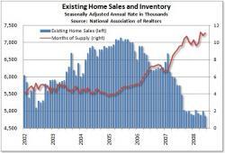 全米不動産協会(NAR)が24日発表した6月の中古住宅販売件数(季節調整済み)は年率換算で486万戸となり、前月から2.6%減った。市場予想(495万戸)を下回り、1999年の調査開始以来、最低の水準。マイナスは2カ月ぶりで、前年同月から15.5%減少した。