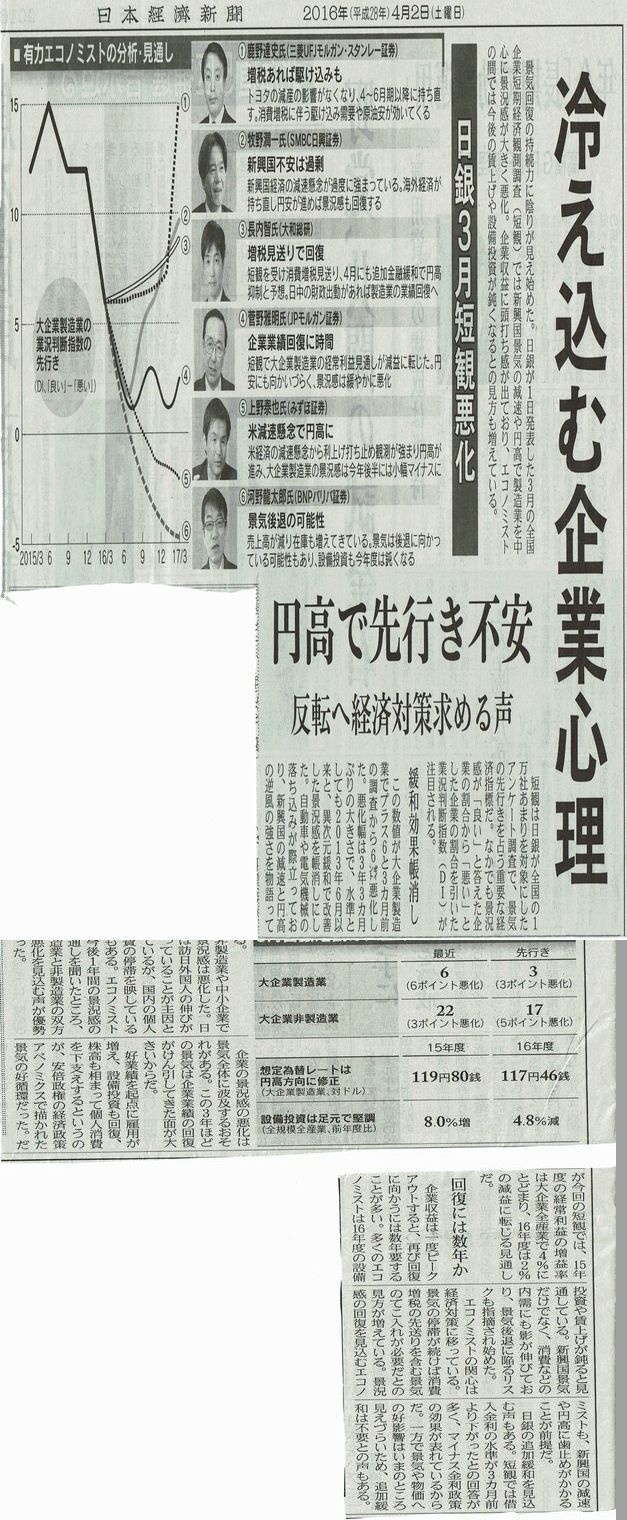 4/1の朝刊で、4/1の暴落前の記事ですが、えらく強気です。
