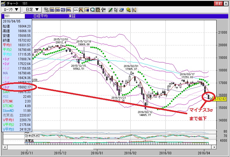 別添えの画像の通り、マイナス2σまで低下していたので、下落は想定していなかった。
