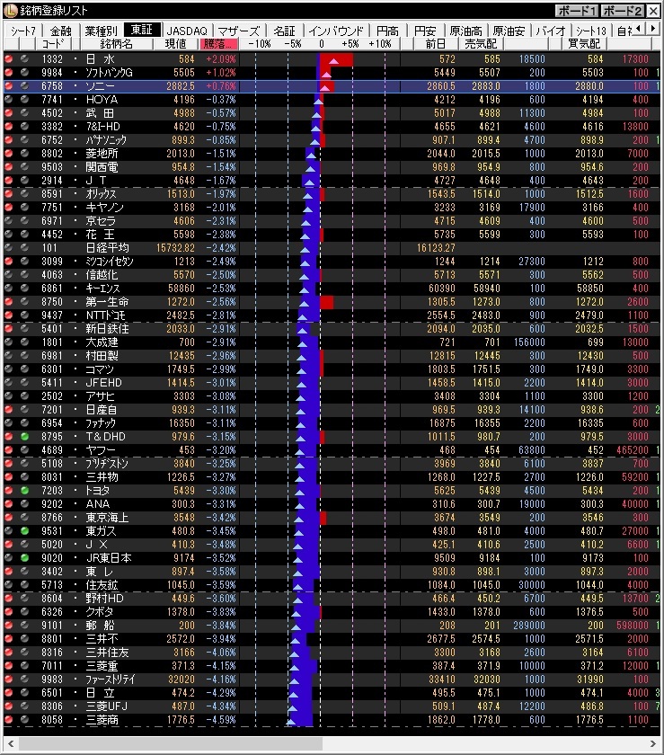 業種別には、引き続き内需関連が強く、一方で、商社、銀行、資源関連株が下落するというここ数字と同じ流れとなっている。