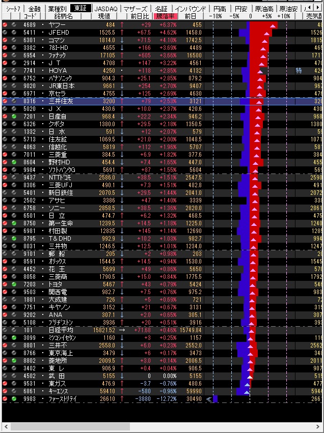 *別添え画像は前日の主要銘柄の株価変動を示す。