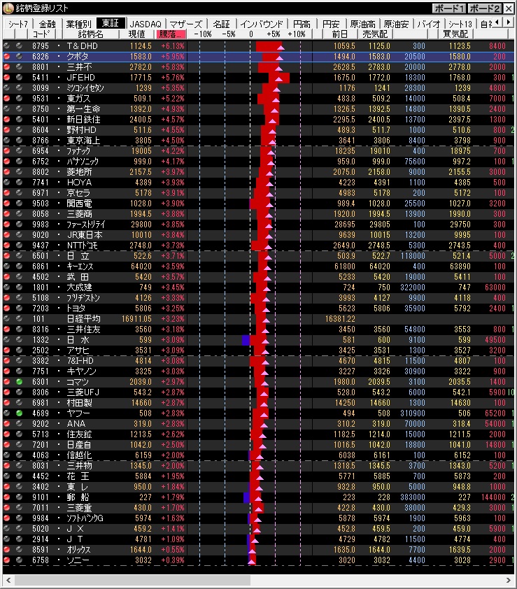 朝方は循環物色の可能性を見ていたが、前々日からの勢いがまだ続く一日だった。