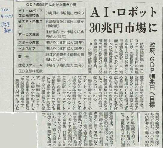 AI・ロボット、30兆円市場に GDP600兆円へ目標