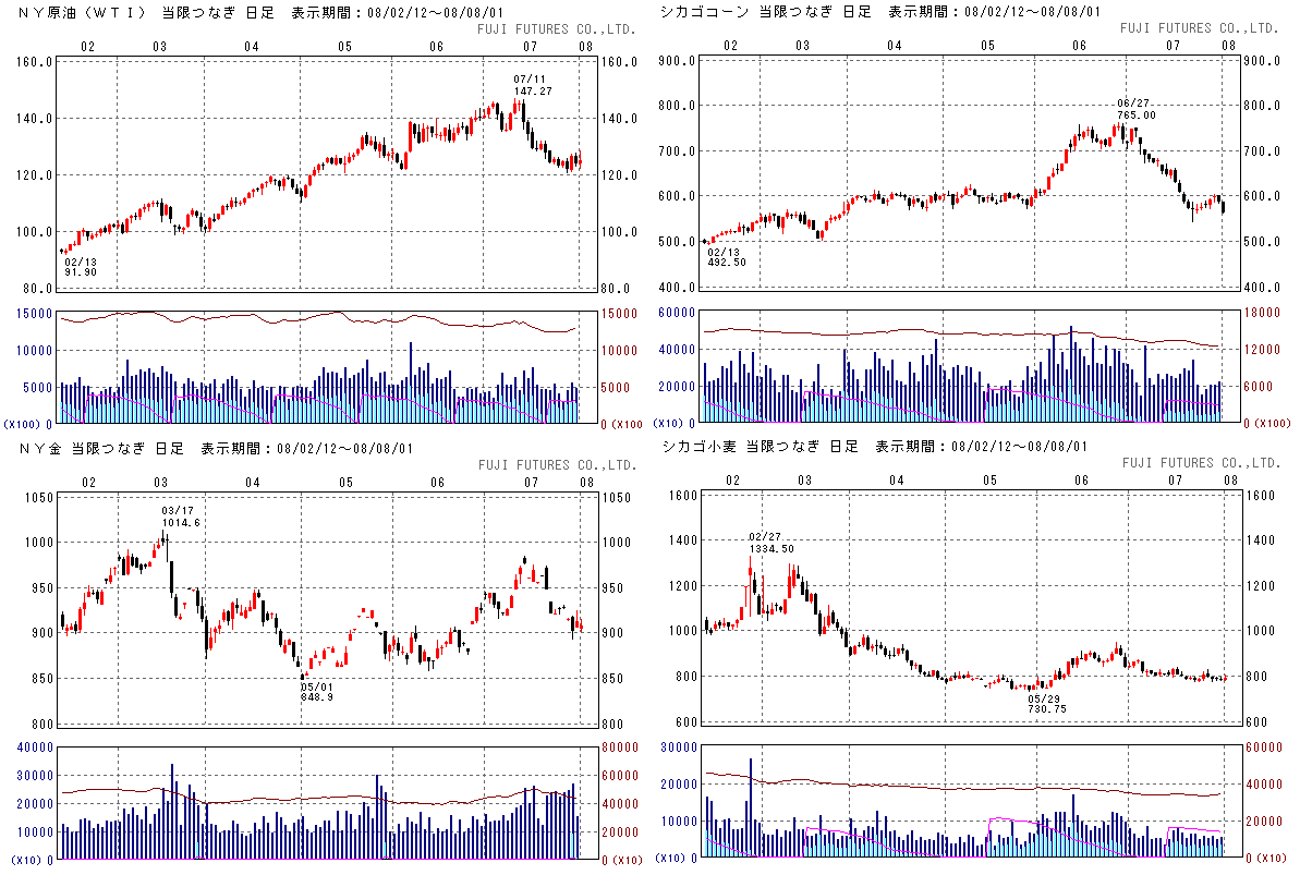 原油価格は、じわりと上昇。120ドル付近がサポートになっているようです。そう簡単に暴落はしてくれないか。