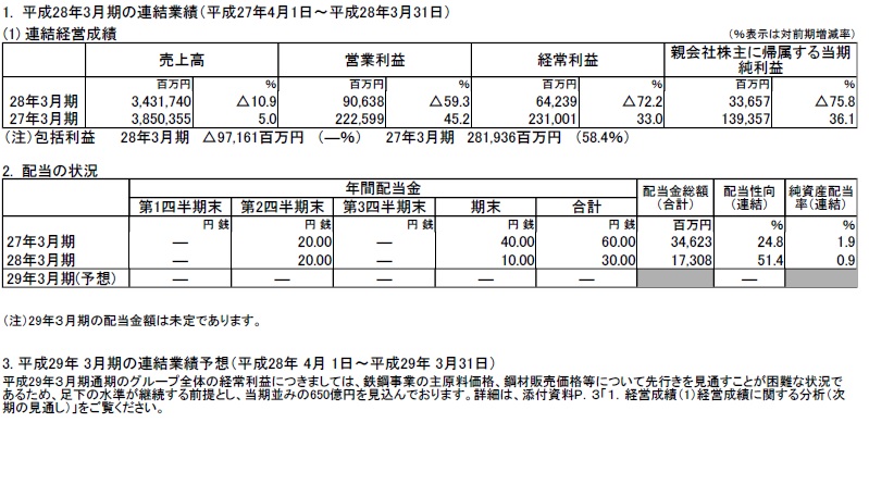JFEホールディングスが決算を公表。