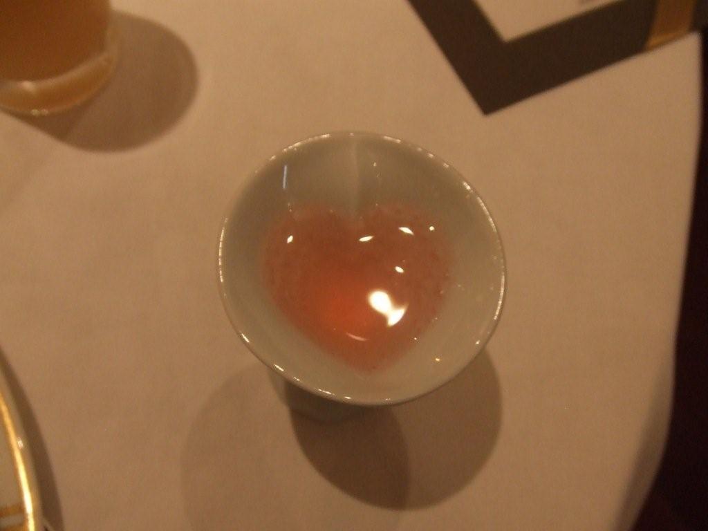 大抵お口直し、のシャーベットが多かったりするけれど、今回はハートになる桃のリキュールのようなものでした☆