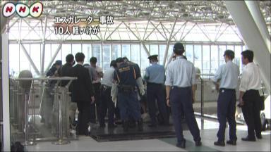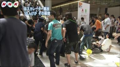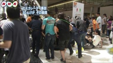 3日午前、東京・江東区にある「東京ビッグサイト」で、およそ120人が乗っていた上りのエスカレーターが突然止まり、一部の人が転倒したりして10人が軽いけがをしました。5日前の定期点検では異常はなかったということで、警視庁は、エスカレーターを動かすモーターなどを取り外して事故の原因を詳しく調べています。