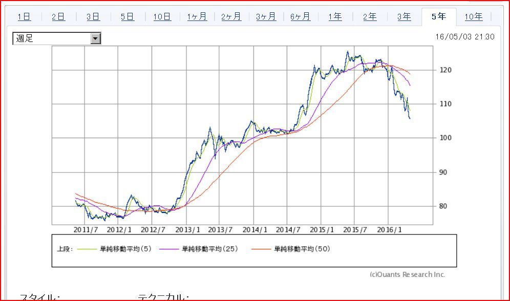 ・ドル円 5年チャート ・・踊り場と変化期を繰り返している。