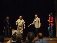 今年の会場は町の中心部にある大学ですが、大学として塀で囲われていません。町のあちらこちらに大学の建物があり、市民と学生が一緒に住んでいるといった感じです。前夜祭では大学の日本研究者による「狂言」が日本語と英語のチャンポンで演じられたり、武宮九段も参加されて鏡割りが行われたり、日本人にとっては大変アットホームでした。