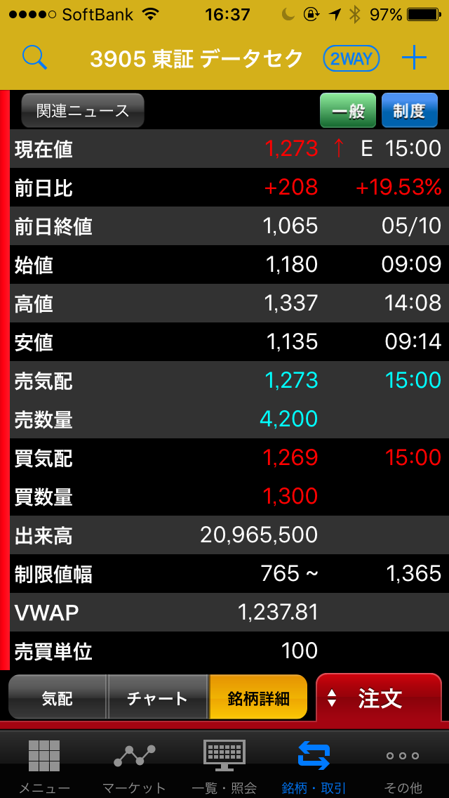 貸借0.5倍の大幅な売り長であり、貸借取引で注意喚起が発表されるなど、踏み上げの展開となっています。
