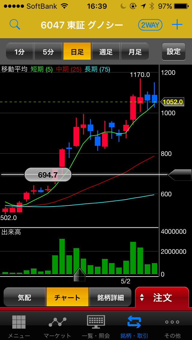 そのリズムの刻み具合で、上場来高値1,730円チャレンジ出来るかが決まりそうです。