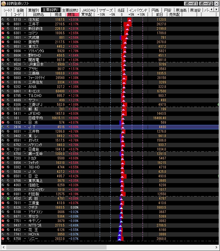 自社株買いを発表したMUFGなど銀行株も朝方は強かったが、一時よりは上昇幅縮小。