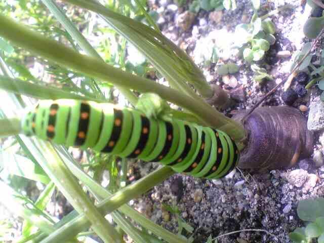 2日で1cm大きくなり1匹はどこかに行ってしまいました。明日あたり蛹化でしょうね。キアゲハもこんな暑いのに大変です。今日は37.9度でした。