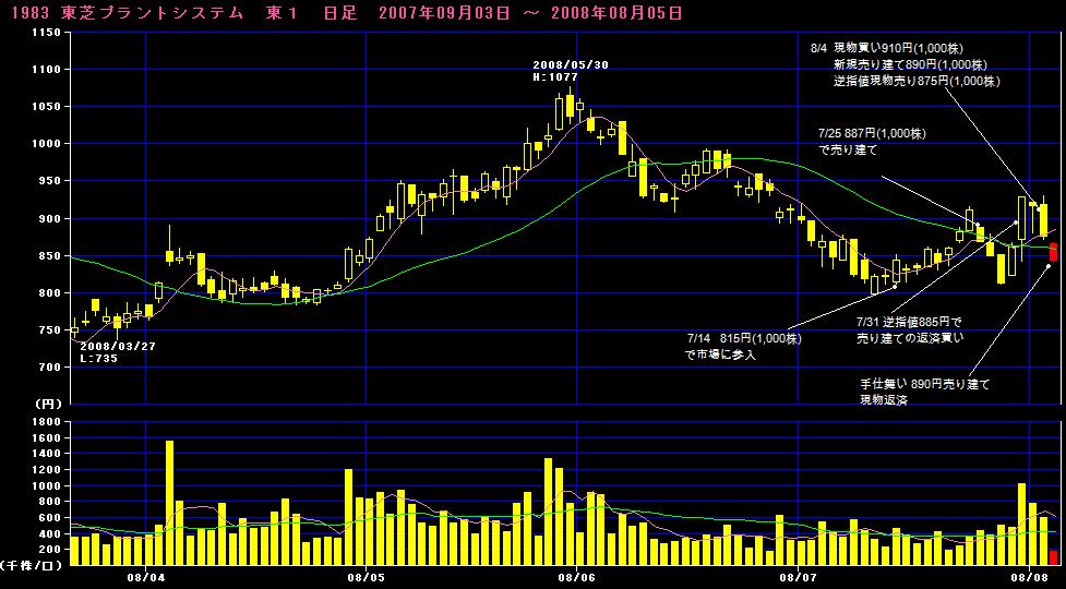 今回の取引を振り返って。7/31は東芝プラントの決算日。