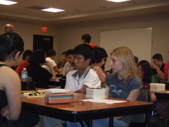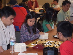 やっと勝てて気をよくして、子どもと大人のペア碁を観戦。かわいい子ども達が大人とペアを組んで真剣に打っていました。とてもほほえましい。写真左の中央はYukinoちゃん(STakehara氏のお嬢ちゃん)。
