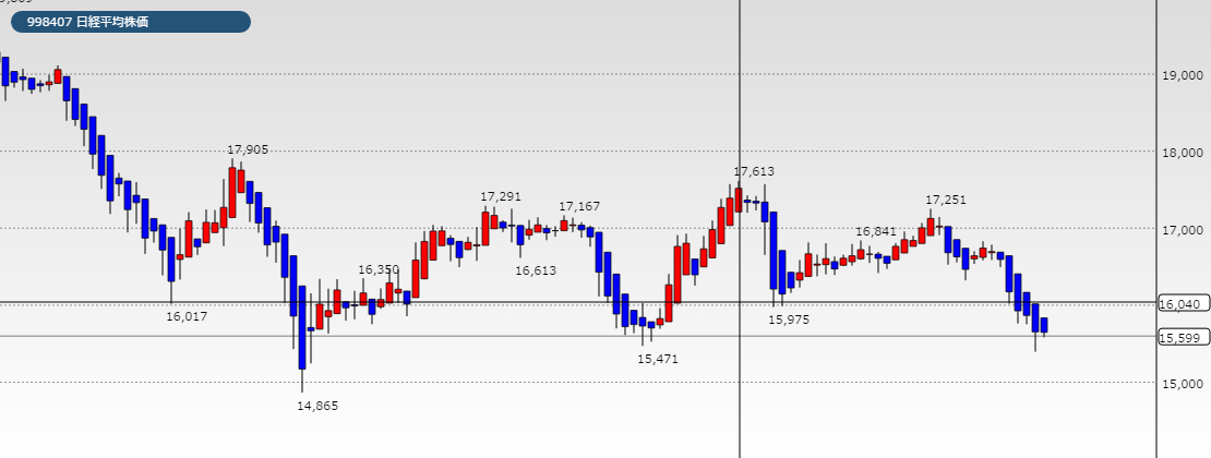 一つの判断だと、週足の三段下げが、有ります。