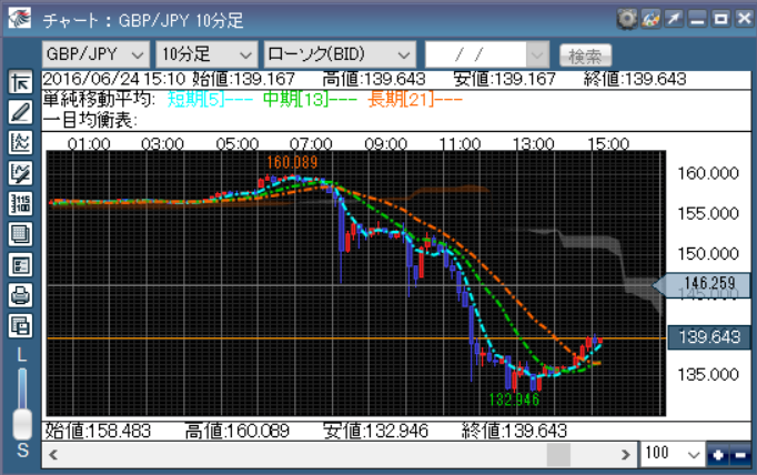 ああ、今日のポン円のチャートを記念に貼っておきます。