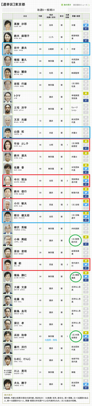参院選東京選挙区は、改選議席6に対し、31人が立候補。