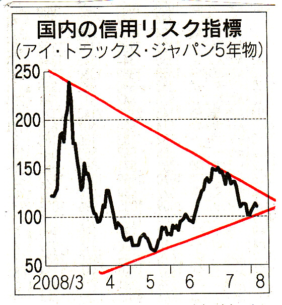 今朝の日経「マーケット総合2」面にCDS指標のグラフが出ている。