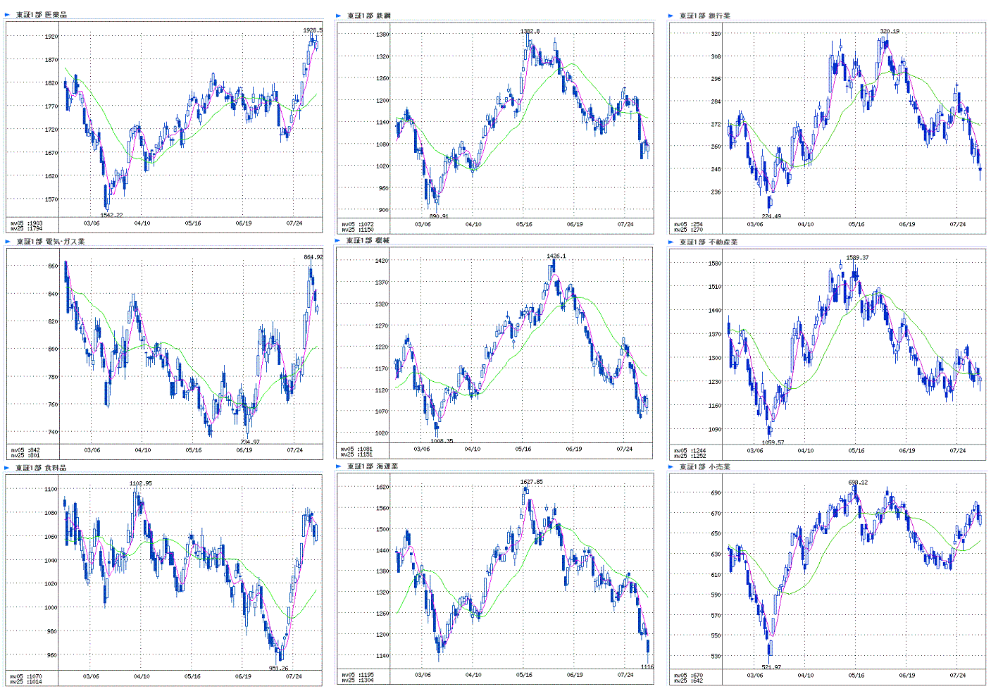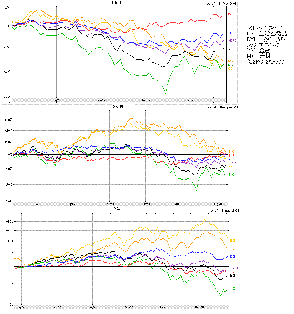 セクターごとのチャートで比較すると一目瞭然ですね。